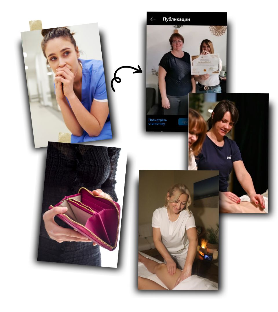 дать вам инструмент, который позволит зарабатывать уже с первых клиентов. Я обучаю авторской технике массажа, которая нравится клиентам и делает их постоянными. Вы станете востребованным мастером, к которому будут возвращаться снова и снова, и сможете гордиться своим профессионализмом.